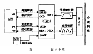 HT2012芯片用來實現(xiàn)HART協(xié)議中通訊信號的解調及調制過程。圖2為調制解調器與微處理器的連接。