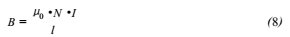 其中,μ0為真空磁導(dǎo)率,N為傳感器線圈匝數(shù),I為流過線圈的電流,l為線圈的長度。