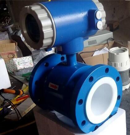 電磁流量計(jì)在結(jié)構(gòu)上由電磁流量傳感器和轉(zhuǎn)換器兩部分組成。傳感器安裝在工業(yè)過(guò)程管道上,它的作用是將流進(jìn)管道內(nèi)的液體體積流量值線性地變換成感生電勢(shì)信號(hào),并通過(guò)傳輸線將次信號(hào)送到轉(zhuǎn)換器。轉(zhuǎn)換器安裝在離傳感器不太遠(yuǎn)的地方,它將傳感器送來(lái)的流量信號(hào)進(jìn)行放大,并轉(zhuǎn)換成與流量信號(hào)成正比的標(biāo)準(zhǔn)電信號(hào)輸出,以進(jìn)行顯示,累計(jì)和調(diào)節(jié)控制。