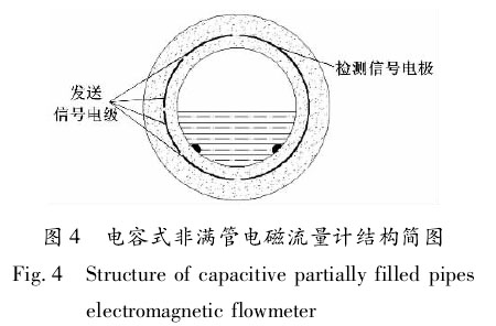 ②電容式非滿管污水廠出水用電磁流量計h。電容式非滿管污水廠出水用電磁流量計結(jié)構(gòu)簡圖如圖4所示。、檢測信號電* 發(fā)送信號電