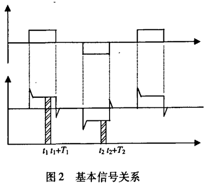 制藥廠污水流量計(jì)一般都采用工頻交流電源供電,其電源電壓的幅值和頻率的變化都會(huì)給制藥廠污水流量計(jì)帶來(lái)電源性干擾噪聲。對(duì)電源電壓的幅值變化,因采用多級(jí)集成穩(wěn)壓,一般而言電源電壓的幅值變化對(duì)電磁流量的測(cè)量精度影響不大。當(dāng)電源電壓的頻率波動(dòng)時(shí),雖然其波動(dòng)范圍有限,但對(duì)制藥廠污水流量計(jì)測(cè)量精度影響較大。為了解決工頻干擾問(wèn)題,實(shí)現(xiàn)對(duì)流體流速感應(yīng)電勢(shì)e柚信號(hào)的準(zhǔn)確測(cè)量,需利用以下基本關(guān)系:①勵(lì)磁周期為工頻周期的整數(shù)倍,即勵(lì)磁頻率為50/nHz(n為偶數(shù));②正負(fù)勵(lì)磁下的同相位采樣。圖2是對(duì)應(yīng)低頻矩形波勵(lì)磁形式下的典型電勢(shì)信號(hào)形式,按上述關(guān)系在一個(gè)勵(lì)磁周期下,若假設(shè)t。和t:點(diǎn)為工頻干擾的等效干擾點(diǎn),且采樣寬度T=T1=T2,則e –ab的基本算式為:,