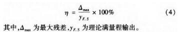 本文采用*小二乘法進(jìn)行線性度評(píng)定,即擬合直線為*小二乘直線。*小二乘直線保證了傳感器至*輸出的平均值對它的偏差的平方和為*小,即可以保證擬合直線得到的結(jié)果與實(shí)測結(jié)果之間的偏差很小,更具可靠性。根據(jù)定義,線性度即是校準(zhǔn)曲線對這條*小二乘擬合直線的偏離程度。