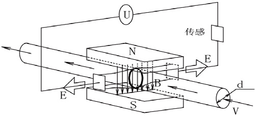 液體管道流量計主要由信號轉換器與傳感器構成,其原理是基于法拉利電磁感應定律,在其傳感器中與被測管軸線垂直方向安裝一對檢測電*,當其接入液態(tài)介質管道,導電液態(tài)物質沿管軸側運動時,導電液體作切割磁力線運動而產生感應電動勢,此感應電動勢由其兩個電*測出,其理論數(shù)值為: