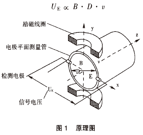 軟化水流量計的基本原理是以法拉*電磁感應(yīng)定律為基礎(chǔ),即導(dǎo)體在磁場中作切割磁力線運動時,在其兩端產(chǎn)生感應(yīng)電動勢。該原理用于測量管道內(nèi)流動的導(dǎo)電性流體。導(dǎo)電性液體在垂直于磁場的非磁性測量管道內(nèi)流動,并且流體流動的方向與磁場方向相垂直(見圖1),