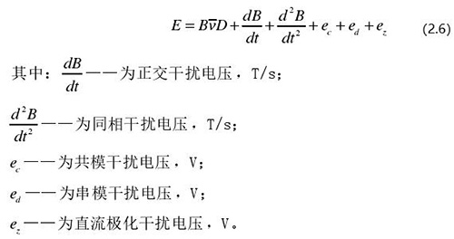 從上圖 2.5 中可以觀察到兩個電*、勵磁線圈、轉(zhuǎn)換器內(nèi)阻之間形成了一個閉合回路,將此回路稱之為初級繞組,從理論上進行分析,磁力線 B 應當平行于勵磁線圈所產(chǎn)生的磁感應線,但在實際的應用過程中由于工藝差異,因此無法達到理想狀態(tài),會產(chǎn)生磁力線穿過勵磁線圈磁感應線的情況,此時將會產(chǎn)生相應的感應電動勢,將此部分感應電動勢稱為變壓器效應。此效應同樣滿足于楞次定律,利用楞次定律進行計算可得如下電動勢: