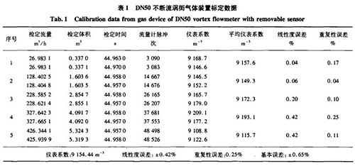 在實際標(biāo)定過程中,相同口徑的不斷流渦街與普通煤氣流量計在可測流量范圍、基本誤差、重復(fù)性等參數(shù)上基本一致,達到了設(shè)計和使用精度的要求。