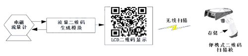 二維碼生成模塊定時(shí)向插入式電磁流量計(jì)發(fā)送采集指令,后者收到指令后發(fā)送流量數(shù)據(jù)。