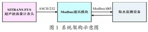 西門子 SITRANS FUS 外夾式水煤氣流量計的標(biāo)準(zhǔn)表頭支 持 4- 20mA 電流信號輸出,而水利部門的取水監(jiān)測設(shè)備應(yīng)用層 采用的是 Modbus 協(xié)議,物理層采用的是 RS485 標(biāo)準(zhǔn),無法與SITRANS FUS 流量計的表頭通信。針對這一問題,本文自主設(shè) 計并實現(xiàn)了一種支持 Modbus 協(xié)議的通信模塊,使得超聲波流量計表頭與取水監(jiān)測設(shè)備可以以 Modbus 協(xié)議進(jìn)行通訊。
