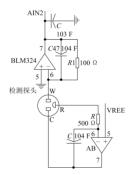 傳感器輸出電流通過檢測電阻時,測量電阻兩側(cè)的電壓值,電壓值與電阻值的比值就是電流值,好終通過計算就能獲取煙氣中二氧化硫的體積濃度。由于 SO 2 -2000 傳感器輸出電流為微安級,導(dǎo)致檢測電阻兩側(cè)的電壓值過小,因此利用兩*運算
