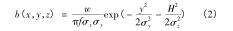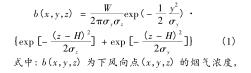 式中: b(x,y,z) = w × e(x,y,z),其中 e(x,y,z) 為二氧化硫濃度與循環(huán)流化床dn150渦街流量計煙氣排放源煙氣強(qiáng)度的比例系數(shù);f 為平均風(fēng)速,m/s; w 為地面空氣內(nèi)煙氣排放強(qiáng)度;σ x 為橫向擴(kuò)散系數(shù)受環(huán)境穩(wěn)定度與下風(fēng)向距離因素的影響程度。式(3)中描述的是基于時間變化的循環(huán)流化床dn150渦街流量計煙氣排放源煙氣排放強(qiáng)度計算模型。