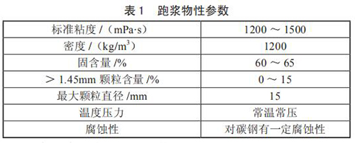 對跑漿進(jìn)行分析后發(fā)現(xiàn),跑漿是一種由煤漿和一些雜質(zhì)混合而成的半流體物質(zhì),當(dāng)實驗室氣體流量計使用煤倉中煤堆中上部煤時,由于煤質(zhì)較好,跑漿中小煤塊*少,性質(zhì)同正常煤漿,只是固含量稍高;而使用煤堆底部的煤時,煤質(zhì)差實驗室氣體流量計研磨不充分,跑漿中含有約 15% 的小煤塊,分析后的跑漿物質(zhì)參數(shù)如表 1 所示。