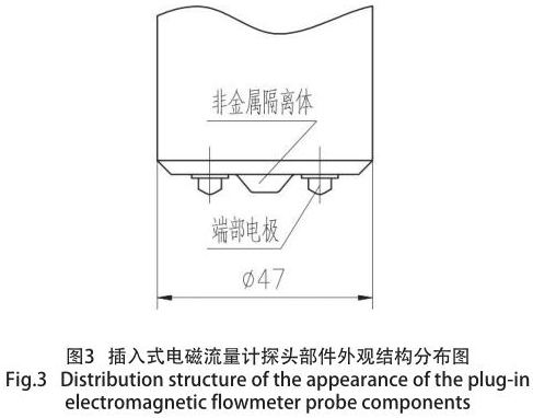 通過(guò)大量的試驗(yàn),對(duì)探頭端部外型結(jié)構(gòu)亦采用特殊設(shè)計(jì),從而消除兩個(gè)電*之間的擾流現(xiàn)象,同時(shí)亦消除因通電產(chǎn)生磁場(chǎng),導(dǎo)致兩個(gè)電*吸附介質(zhì)中的鐵屑而影響測(cè)量精度和死區(qū)效應(yīng),增強(qiáng)了輸出信號(hào)的穩(wěn)定性,從而提高傳感器準(zhǔn)確度和抗干擾性。通過(guò)結(jié)構(gòu)的優(yōu)化設(shè)計(jì),使用壽命更長(zhǎng),測(cè)水流量計(jì)探頭局部,如圖 3 所示。