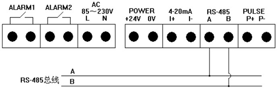 (2)四線制 4-20mA 電流輸出和 HART 手操器的接法: