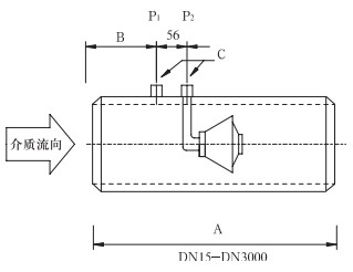 取壓口法蘭公稱直徑(標準設計)為DN40,也可以依據用戶要求選取法蘭直徑。
