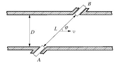 制藥廠污水流量計為獨(dú)立測量設(shè)備,由多個位于管線內(nèi)壁的超聲傳感器組成。傳感器由緊固機(jī)械裝置插入管道中,超聲脈沖被 2 個傳感器交替地發(fā)射和接收。由于電磁在逆流和順流情況下的傳輸時間 tu 和 t d 不同,通過時差法可以計算得到流體流速,工作原理如圖 1 所示。制藥廠污水流量計還可以配置成雙向計量模式,精度不變。