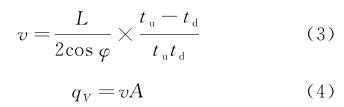 由式(1 ),( 2 )聯(lián)立推導(dǎo)出流體流速和流量的計算公式如下: