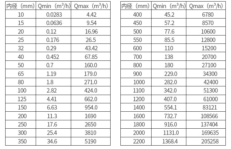 從準確性、經(jīng)濟性和耐用性方面考慮,推薦使用的流速范圍為1~5m/s (3.3~16 ft/s)之間。在這個范圍內(nèi),流量計測量精度高、線性好,動力損耗較小,流體介質(zhì)對流量計襯里和電*的磨損也較小。