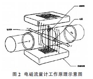若在磁感應(yīng)強(qiáng)度為B的均與磁場(chǎng)中,垂直于磁場(chǎng)方向放一個(gè)內(nèi)徑為D的不導(dǎo)磁管道,當(dāng)導(dǎo)電液體在管道中以流速u(mài)流動(dòng)時(shí),導(dǎo)電流體就切割磁力線(xiàn)。如果在管道截面上垂直于磁場(chǎng)的直徑兩端安裝一對(duì)電極則可以證明,兩電極之間也將產(chǎn)生感應(yīng)電動(dòng)勢(shì)E=kBDv (1-2)