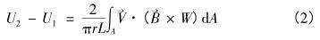 式中,S均勻為測量區(qū)域任意一點磁感應強度與珔B之比在95%至105%的面積和,S測量區(qū)域為測量區(qū)域的總面積。由Maxwell方程及在一定的假設條件下,可得井水流量計的感應電勢的表達方程,如式(2)所示: