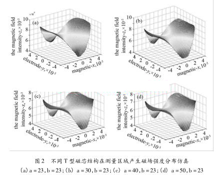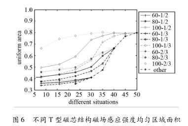 仿真實驗證明在有限的空間下,修改T磁芯的不同參數(shù),可以增加流量計測量區(qū)域內(nèi)部的磁場分布情況,也可以適當?shù)恼{整流量計測量區(qū)域中的磁場強度與均勻度,根據(jù)生產(chǎn)測井中的實際工況,改變井水流量計的T磁芯參數(shù)獲得設計參數(shù)。