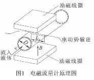 如圖1所示,某一時刻由一對勵某一時刻由一對勵磁線圈產(chǎn)生的磁感磁線圈產(chǎn)生的磁感應強度B,方向向上,流入液體的速上,流入液體的速度為v,管的直徑管為D,兩*的距離為Le,兩*間電動勢,兩*間電動勢ε正比于磁感應強度正比于磁感應強度B、流速v和兩*間的距離Le,即:
